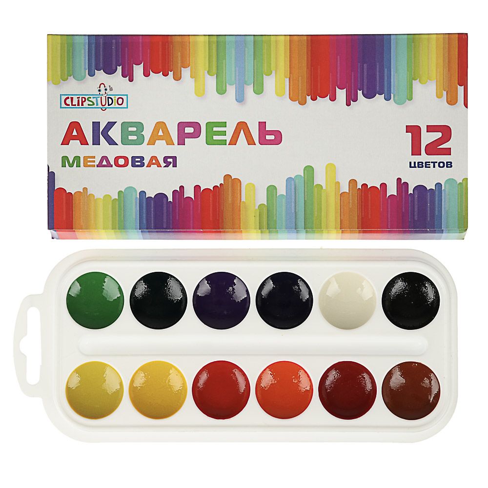 ClipStudio Краски акварельные, 12 цветов, без кисти, в картонной упаковке