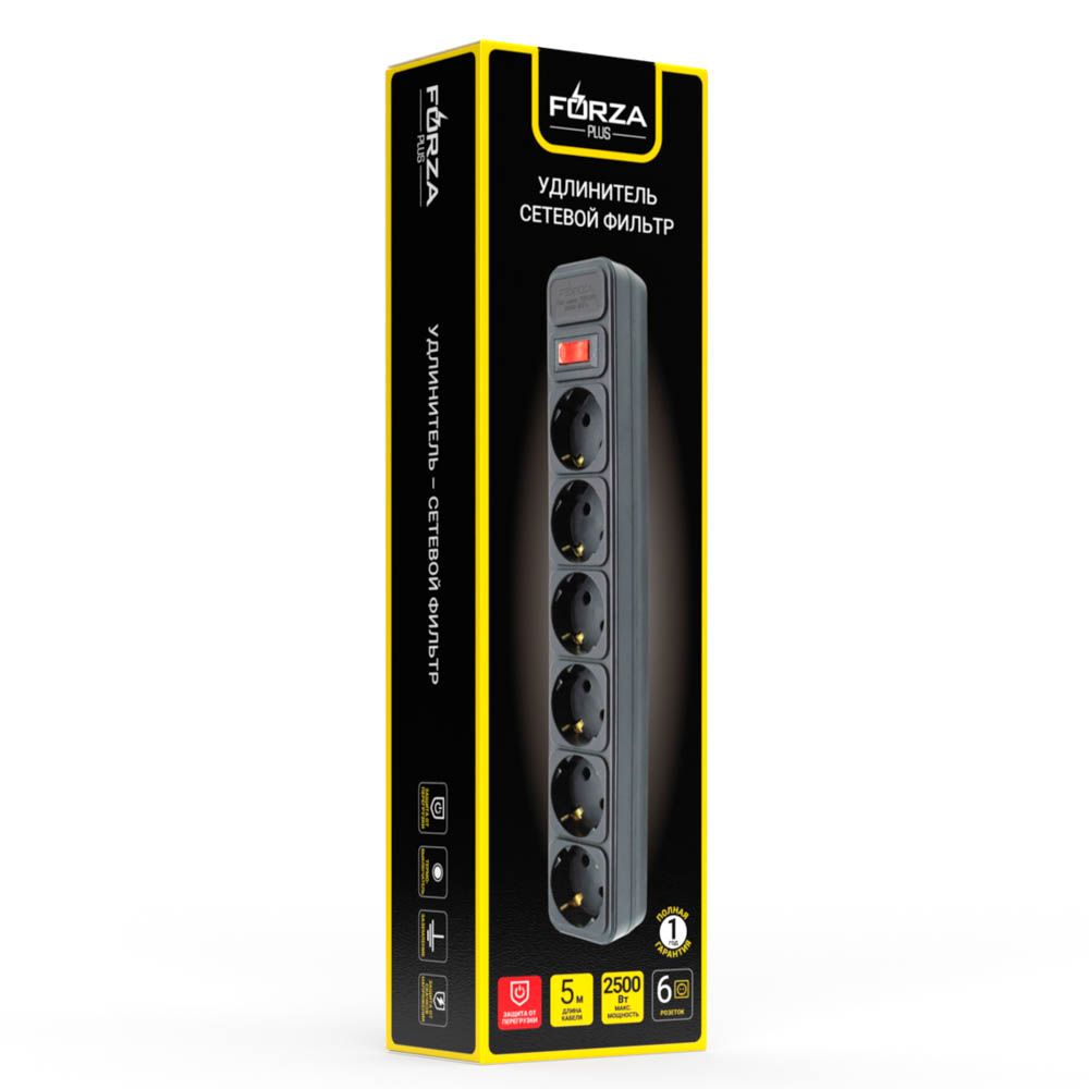 FORZA Удлинитель, сетевой фильтр 6 розеток 5м 1мм
