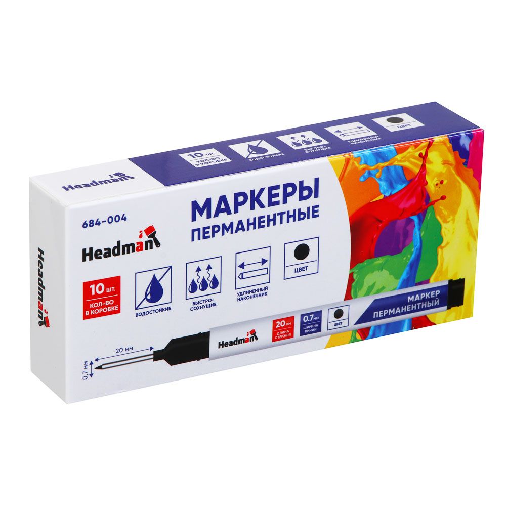 HEADMAN Маркер перманентный удлиненный, тонкий стержень черный