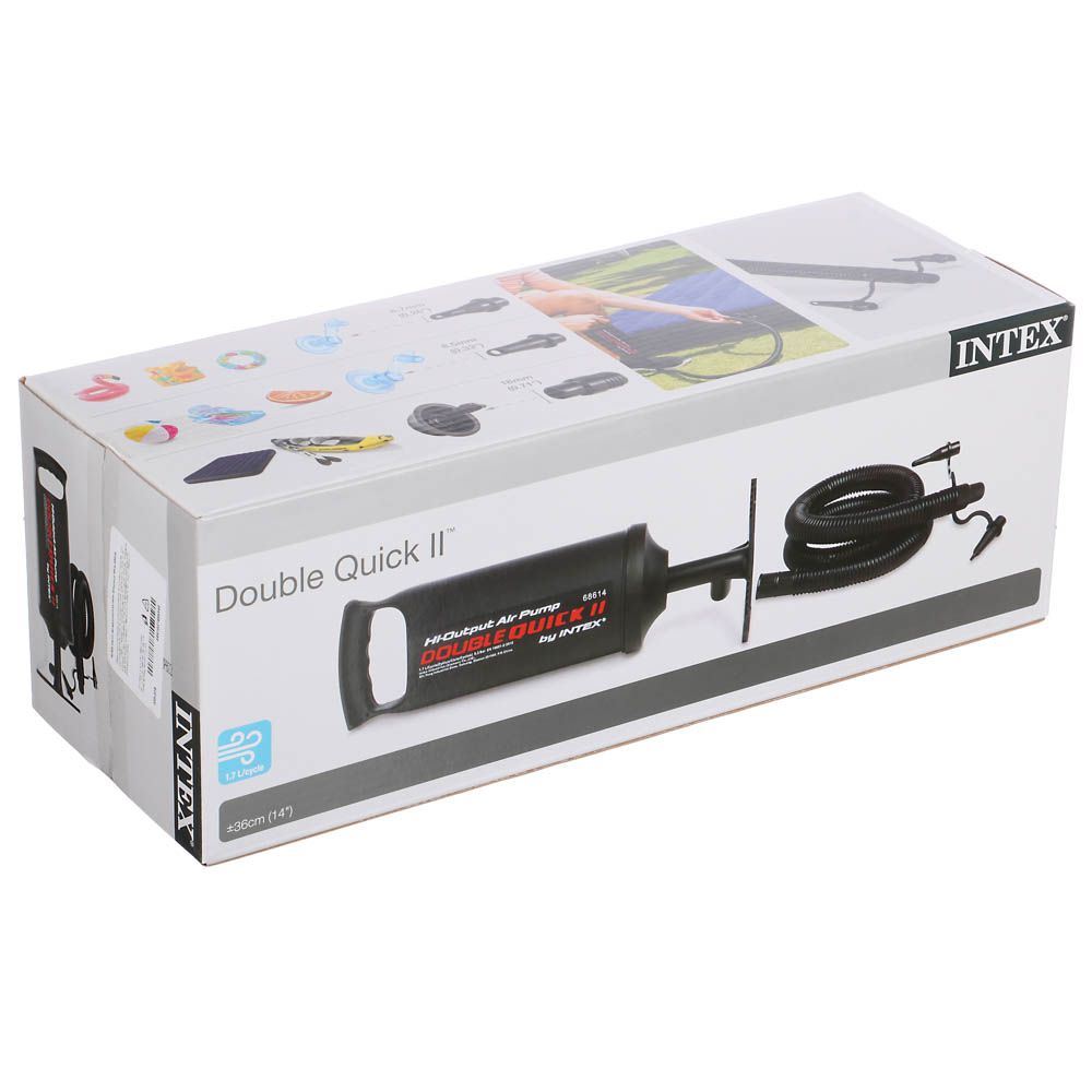 Мощный воздушный ручной насос INTEX предназначен для накачки матрасов, плавательных кругов, бассейнов и других небольших надувных изделий. Компактный размер и малый вес позволяют брать его с собой в поездки. Продуманная конструкция осуществляет накачку при движении поршня в обе стороны, благодаря чему скорость работы увеличивается в 2 раза. Имеет гофрированный шланг и насадки, поэтому подходит для всех изделий фирмы INTEX.