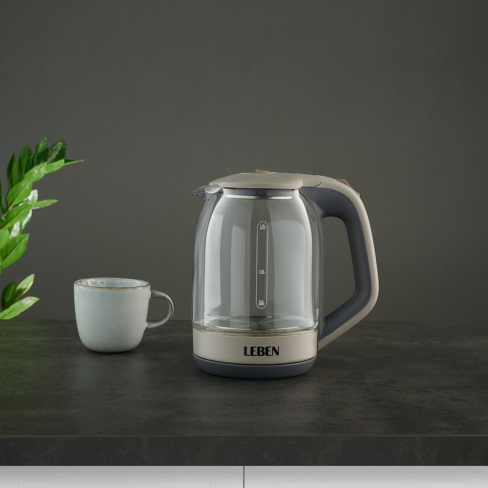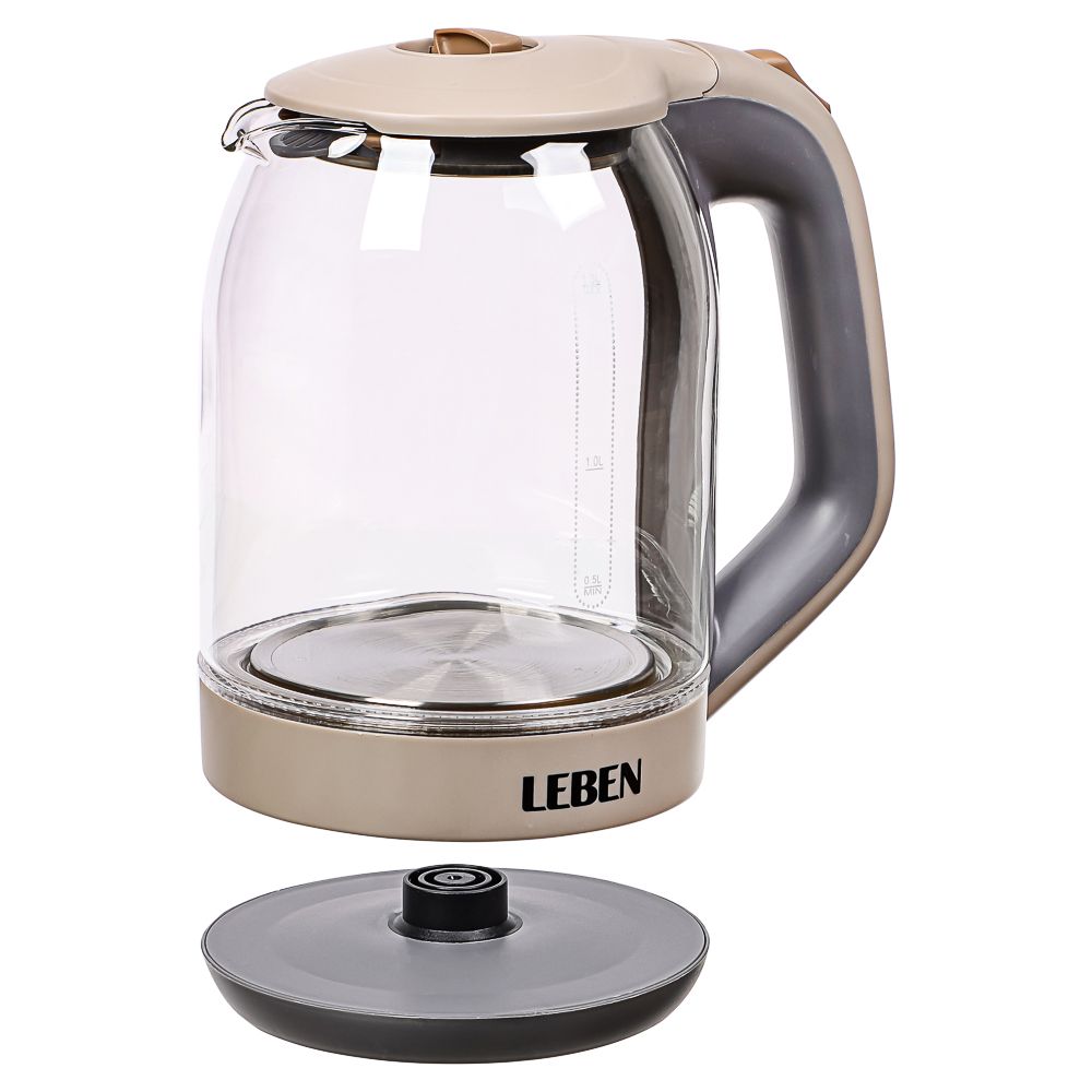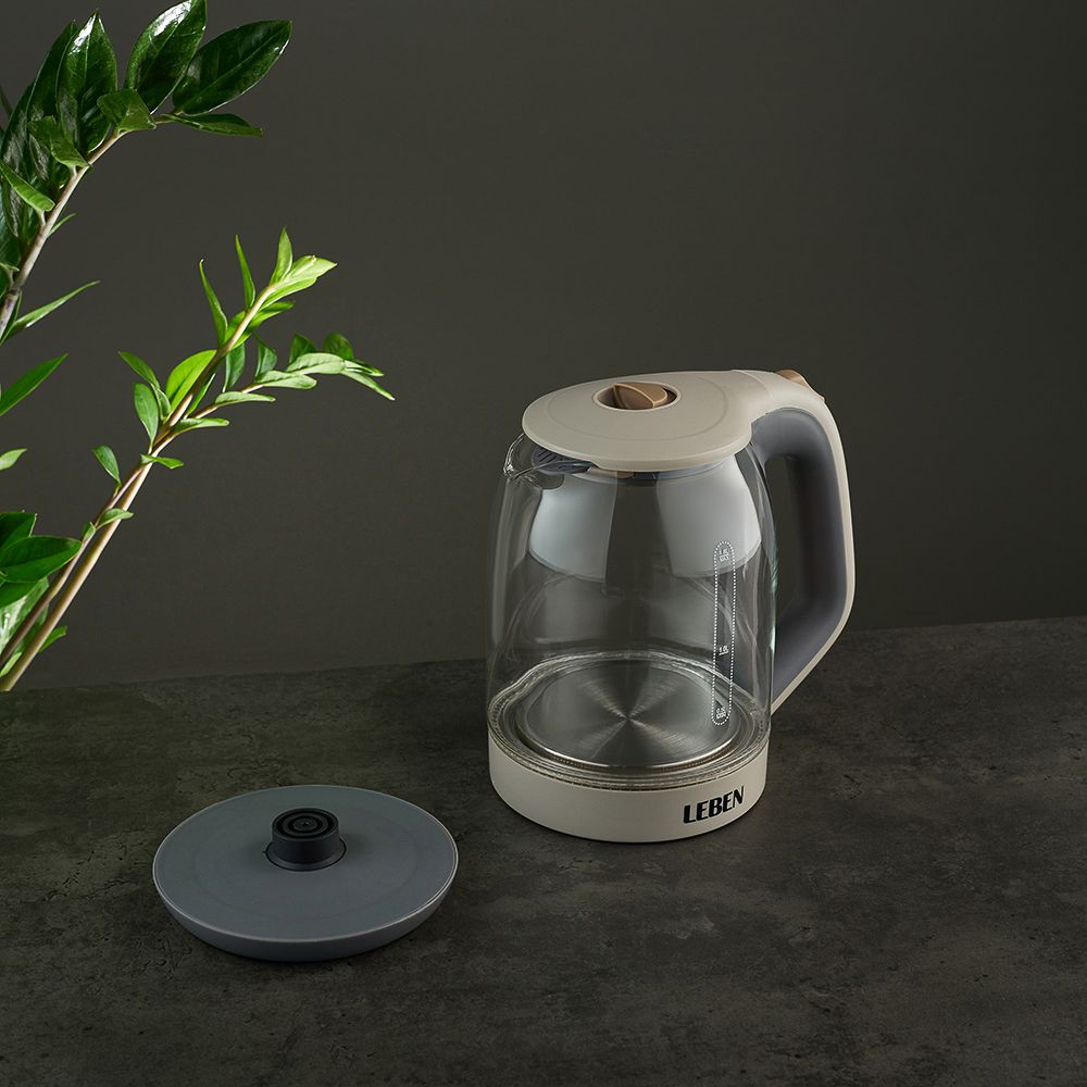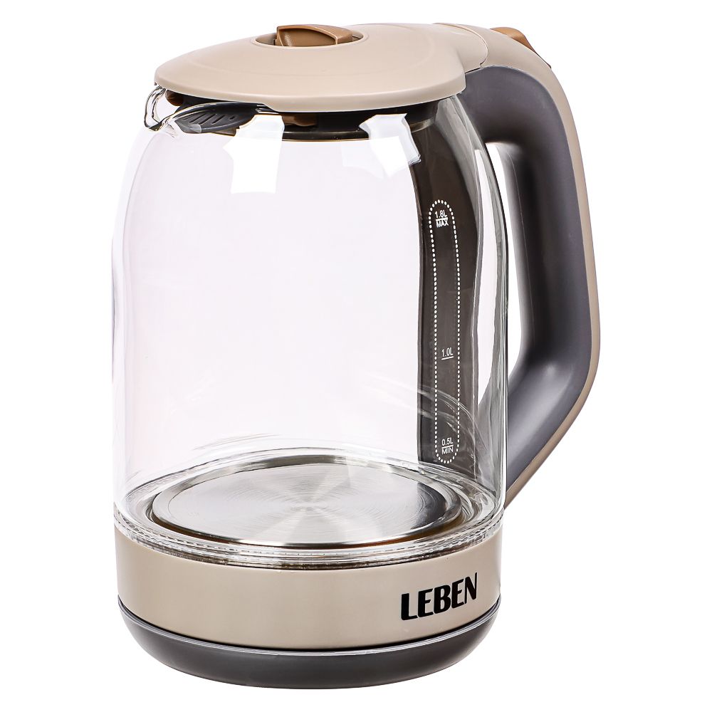 LEBEN Чайник электрический со стеклянной колбой, 1850 Вт, 1,7л