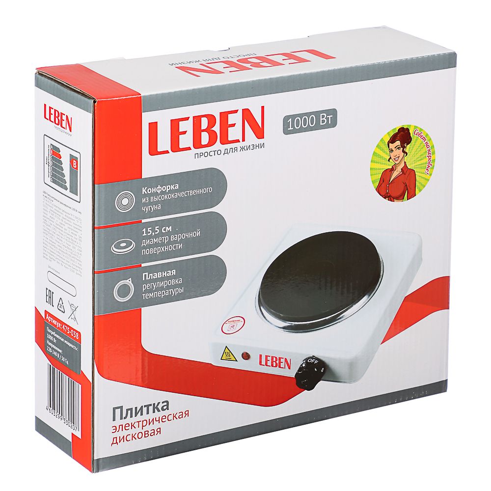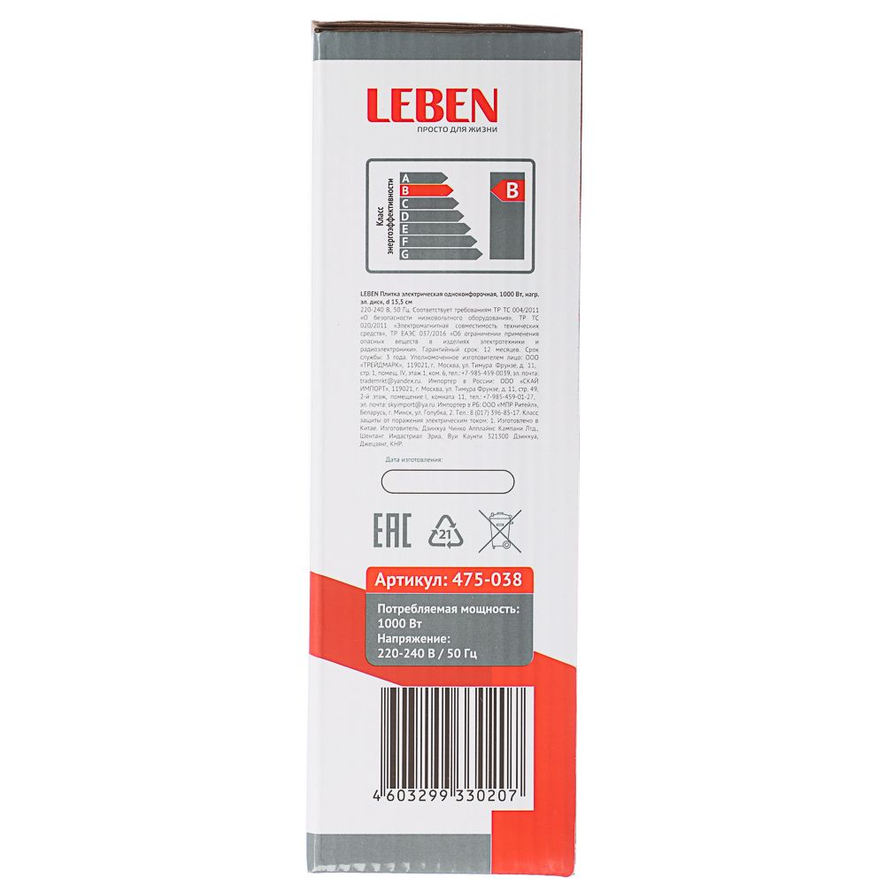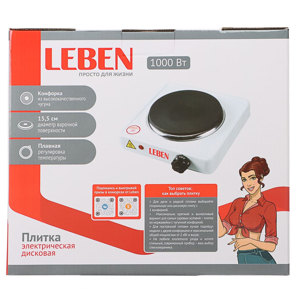 LEBEN Плитка электрическая одноконфорочная 1000Вт нагр. эл. диск d15,5см