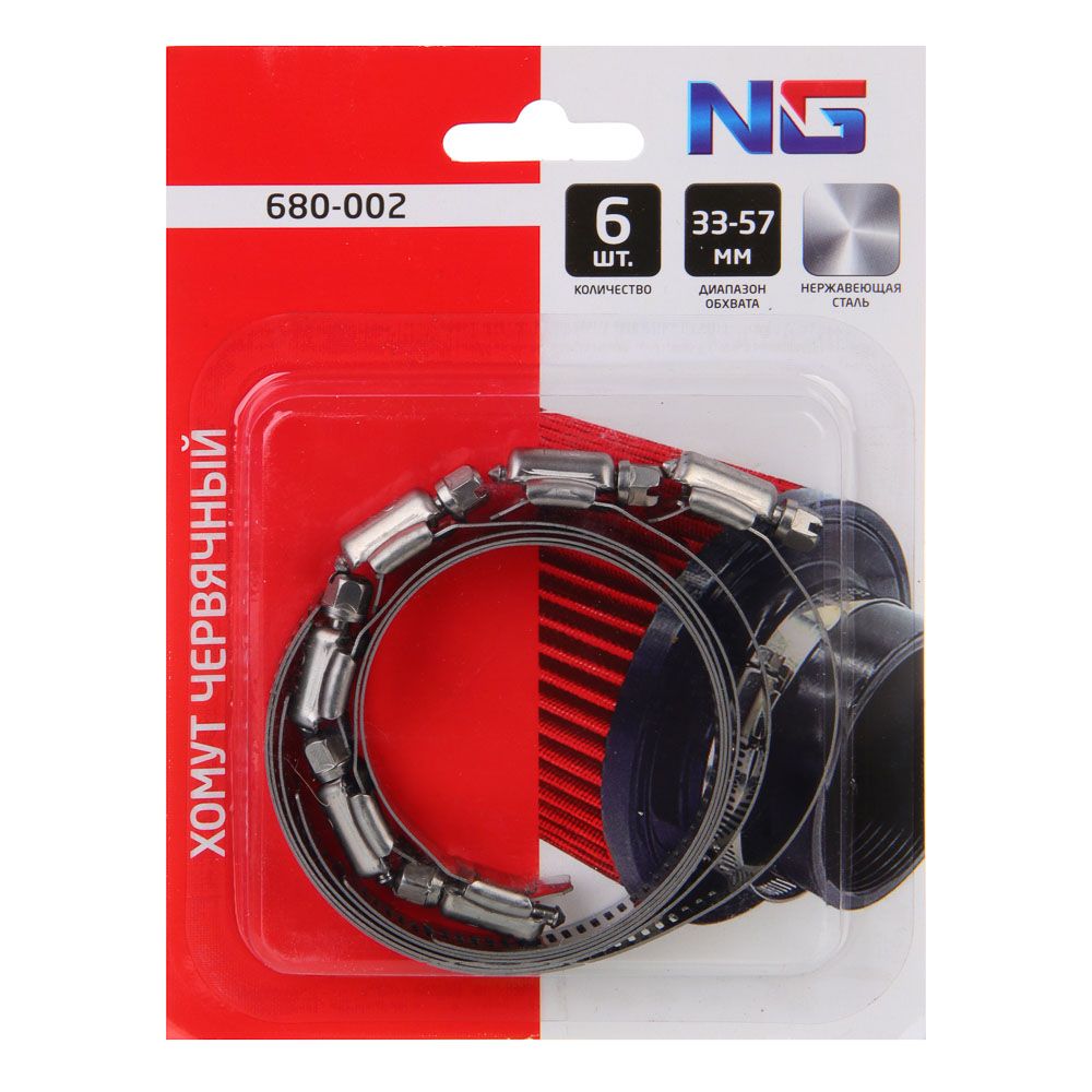 NG Хомут червячный 33-57мм 6 шт