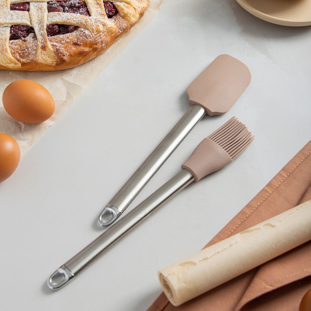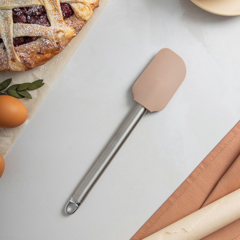 Любите баловать себя вкусной выпечкой? Кондитерская силиконовая лопатка сделает подачу пирогов и десертов максимально простой и удобной. Силикон — гибкий, мягкий материал, который не может повредить антипригарное покрытие формы. Благодаря жаропрочности он не плавится под воздействием высоких температур. Идеальное решение для стеклянной и керамической посуды. 5 причин купить лопатку для выпечки Vetta (Ветта):• выполняйте любые манипуляции: перемешивайте и переворачивайте ингредиенты• перевернет и снимет даже самые тонкие блинчики• используйте в качестве шпателя для нанесения крема поверх кондитерского изделия• эргономичная ручка с отверстием для хранения в подвешенном виде• кулинарные лопатки представлены двух цветовых вариантах.