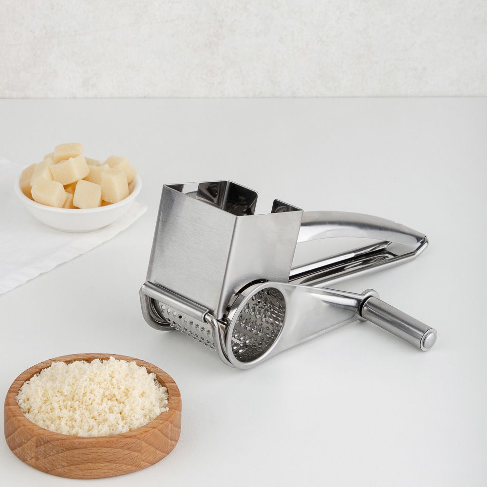 Уникальная роторная тёрка SATOSHI идеально подходит для натирания твёрдых сыров. Классный дизайн, гладкий внешний вид и удобный вращающийся механизм. Подходит как для правшей, так и для левшей. Ее небольшой размер и удобная рукоятка идеально подходит для добавления последних штрихов уже готовому блюду. Никогда измельчение сыра не было таким легким и удобным. Может быть оригинальным подарком.