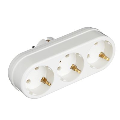Переходник-разветвитель на три евророзетки к розетке, с заземлением. Применяется для подключения нескольких бытовых электрических приборов к одной стационарной розетке.