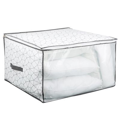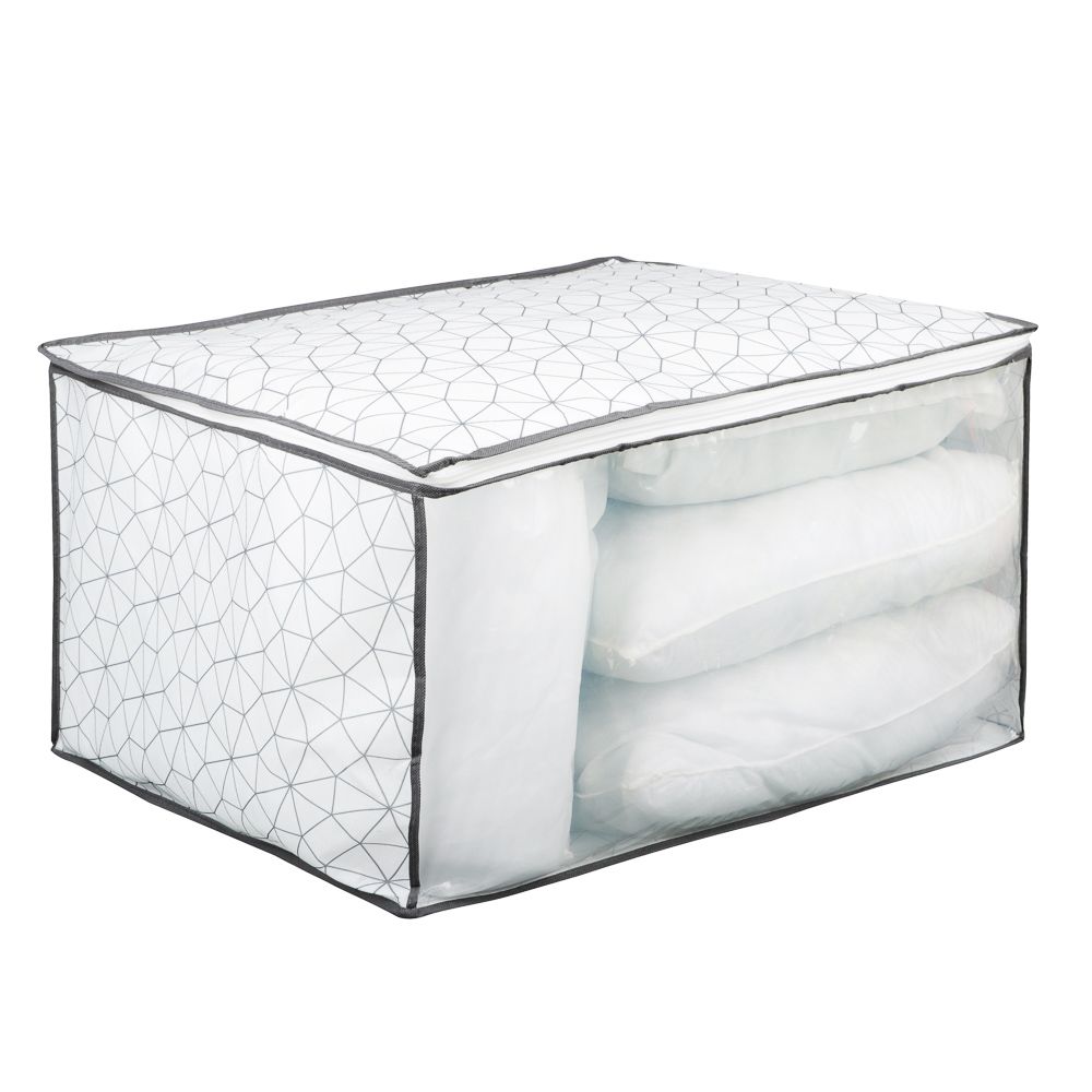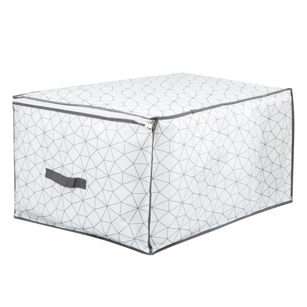Кофр - это футляр для хранения одежды, постельных принадлежностей, пледов, полотенец и скатертей. Его можно купить, чтобы убрать сезонные вещи и освободить пространство. Чехол прямоугольной формы 60х50х35 см изготовлен из нетканого материала, который защищает вещи от насекомых, препятствует попаданию влаги, не пропускает пыль. Контейнер может использоваться автономно, а также в качестве дополнительной секции для хранения вещей в шкафу. Крышка оснащена застежкой-молнией.