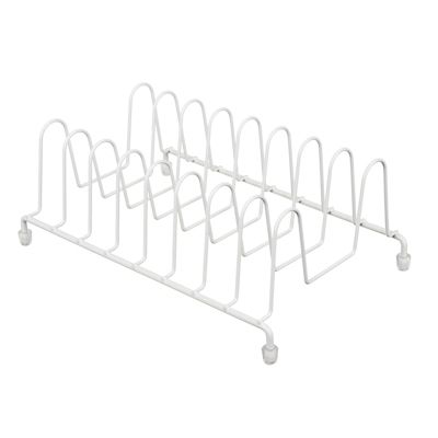 Подставка под тарелки VETTA может использоваться как для хранения, так и для сушки посуды. Вмещает 8 предметов. Выполнена из металла с покрытием. Оснащена устойчивыми ножками с антискользящими накладками, поэтому надежно стоит на поверхности стола или столешницы. Еще один вариант использования – в качестве подставки под разделочные доски. Белый цвет смотрится современно и впишется в интерьер любой кухни.