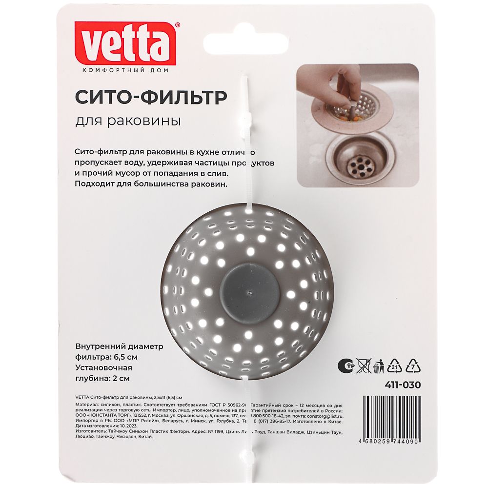 VETTA Сито-фильтр для раковины, 2,5х11(6,5)см, силикон, пластик