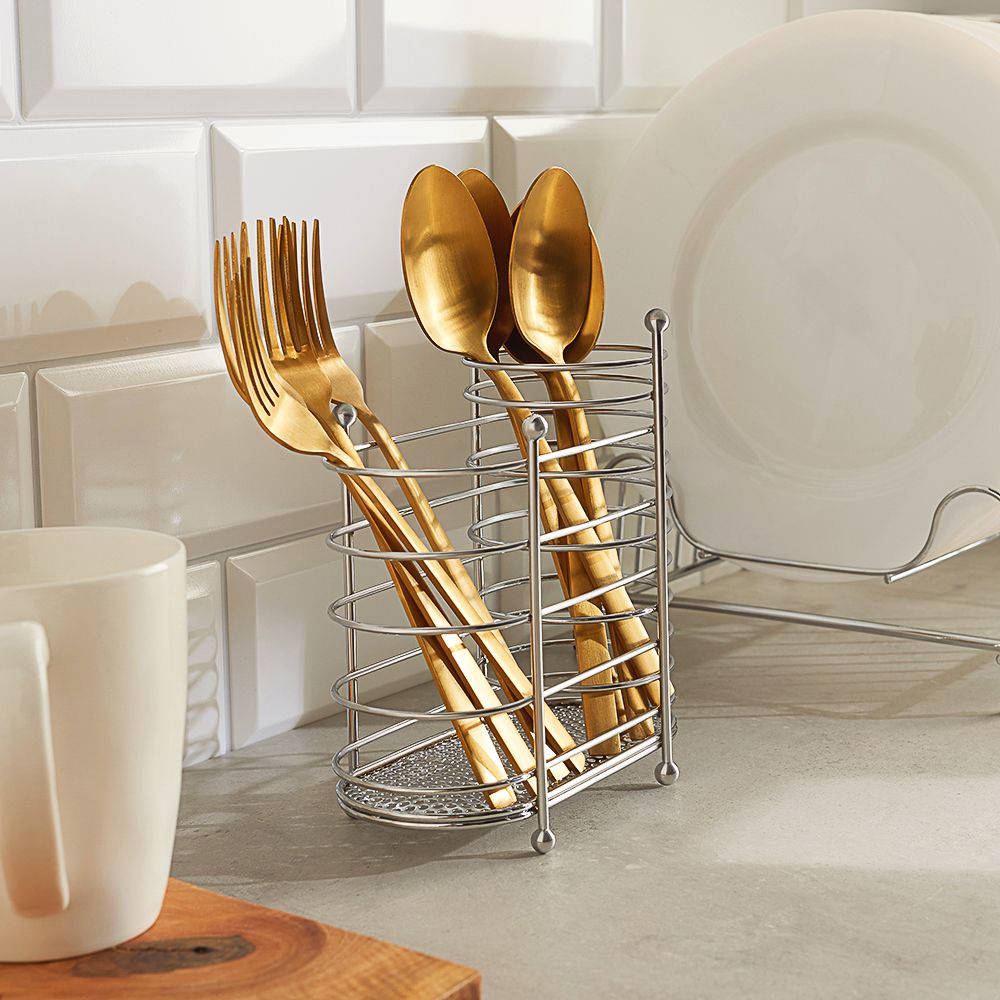 Сушилка для столовых приборов. Овальная настольная подставка для ложек, вилок и других приборов с двумя отделениями. Благодаря высокой прочности прослужит долгое время. За счет открытой конструкции легко моется, поэтому не требует сложного ухода. Современный дизайн сушилки впишется в любой интерьер.