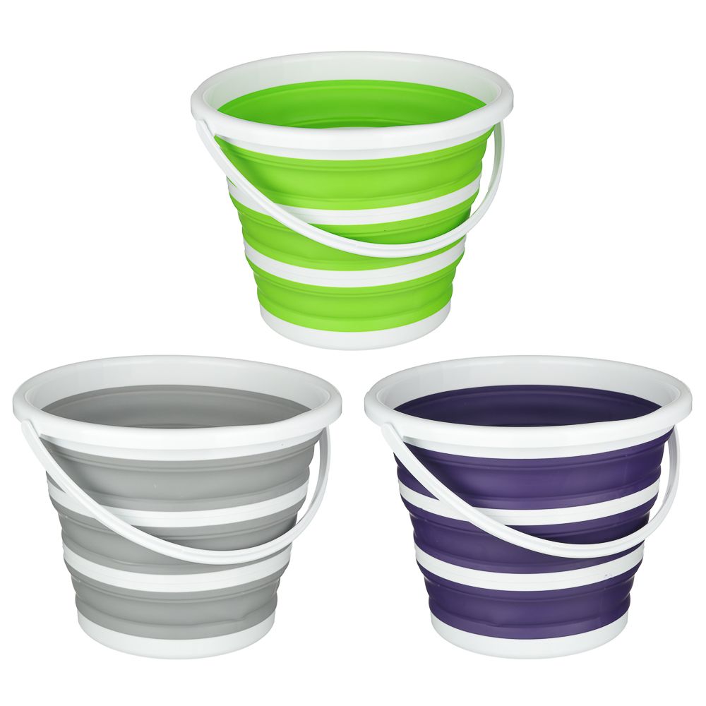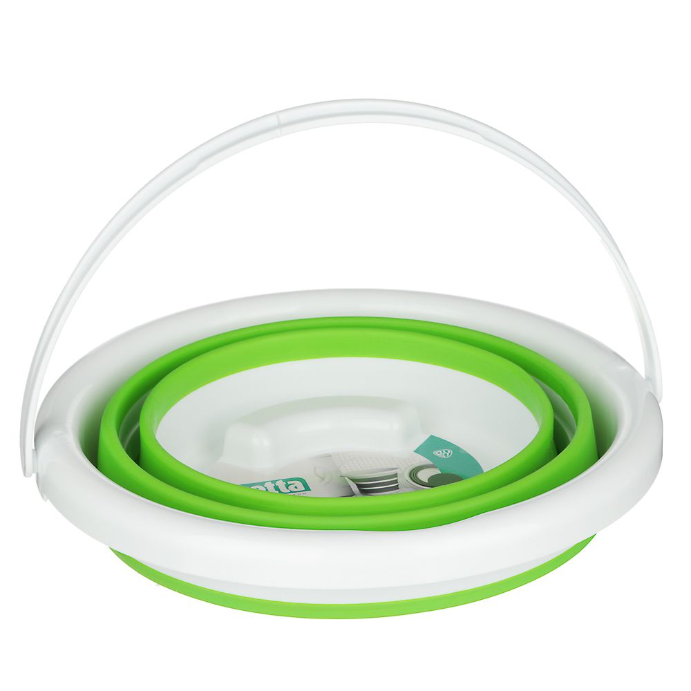 Ведро складное силиконовое 10 л – необходимая вещь в быту, на даче, на рыбалке и в походе. Плоское и компактное в сложенном виде, поэтому его можно хранить под ванной, на невысокой полке или за стеллажом, а также повесить на петлю. Легко и быстро раскладывается и хорошо держит форму. Может использоваться для полива, уборки, сбора урожая и грибов, хранения улова. Подходит для горячей воды. 3 цвета на выбор.