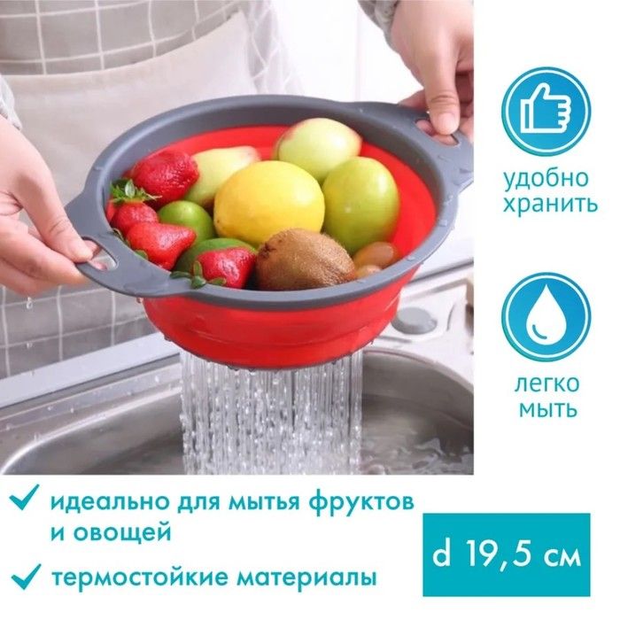 К тому же, если дуршлаг сделан из пластмассы, то его не рекомендуется использовать для слива горячей жидкости. Наиболее удобная модификация дуршлага – это складная конструкция, выполненная из силикона. Инновационный материал, который получил большое распространение в медицинской области, стал настоящей находкой для производителей, специализирующихся на выпуске безопасной, практичной и оригинальной продукции для кухни. Благодаря свойству этого уникального материала, складной дуршлаг способен выдерживать большие перепады температур, а его складная конструкция позволяет занимать минимум места при хранении.