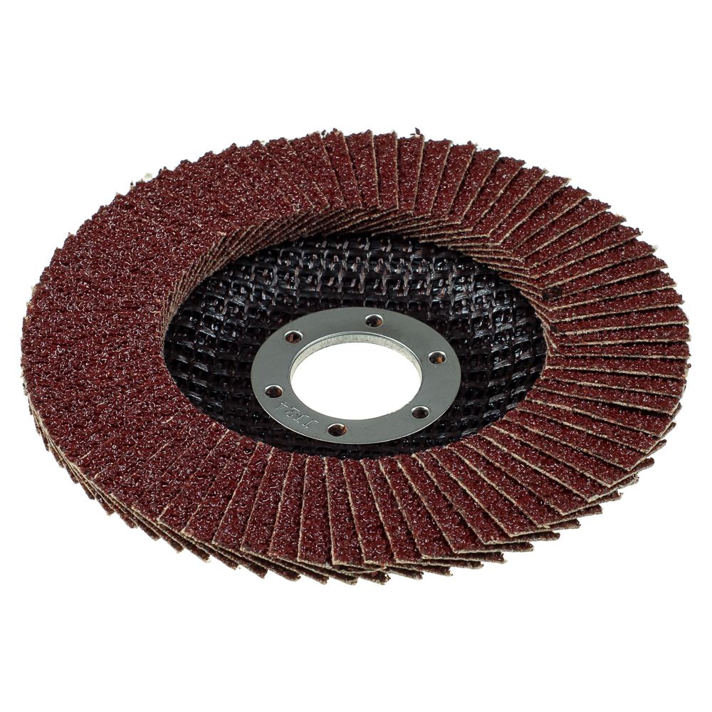 Лепестковый торцевой диск ЕРМАК 115x22 мм со степенью зернистости р24 используется совместно с угловыми шлифовальными машинами и рассчитан на максимальное количество оборотов 13200 об/мин. Максимальная линейная скорость – 80 м/сек. Крупнозернистый абразив используется для грубой черновой шлифовки. Прекрасно справляется с рядом задач: снятие ржавчины, старой краски, зачистка сварных швов, снятие дефектов с поверхностей. Материал диска – электрокорунд и бакелитовая связка дают высокую износостойкость и прочность, а также отличное качество шлифовки даже при работе на высоких скоростях.