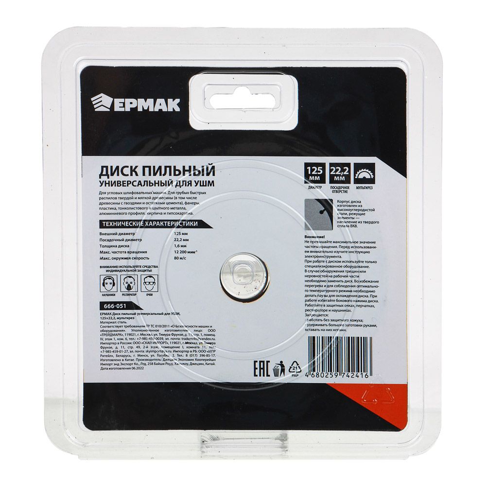 ЕРМАК Диск пильный, универсальный для УШМ 125х22,2 мультирез