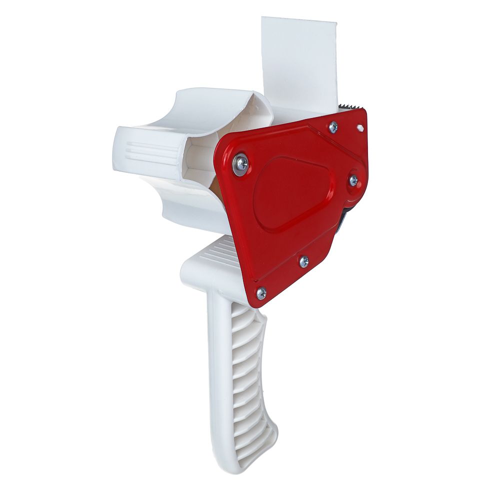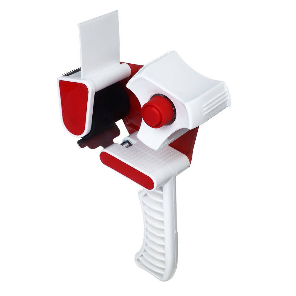 Предназначен для клейкой упаковочной ленты шириной до 50 мм. Удобный и легкий! Винт для регулировки натяжения ленты предотвращает ее случайное разматывание. Прижимная пластина способствует непрерывному наклеиванию. Встроенный нож позволяет легко отрезать ленту. Удобная пластиковая ручка светло-серого цвета. Корпус выполнен из металла в красном цвете. Упаковочная клейкая лента в комплект не входит.