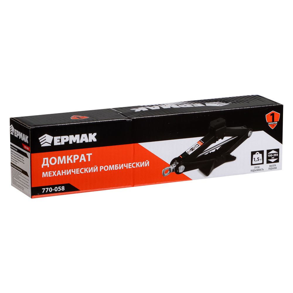 ЕРМАК Домкрат механический ромбический 1,5т, высота подъема100-393мм, резиновая площадка
