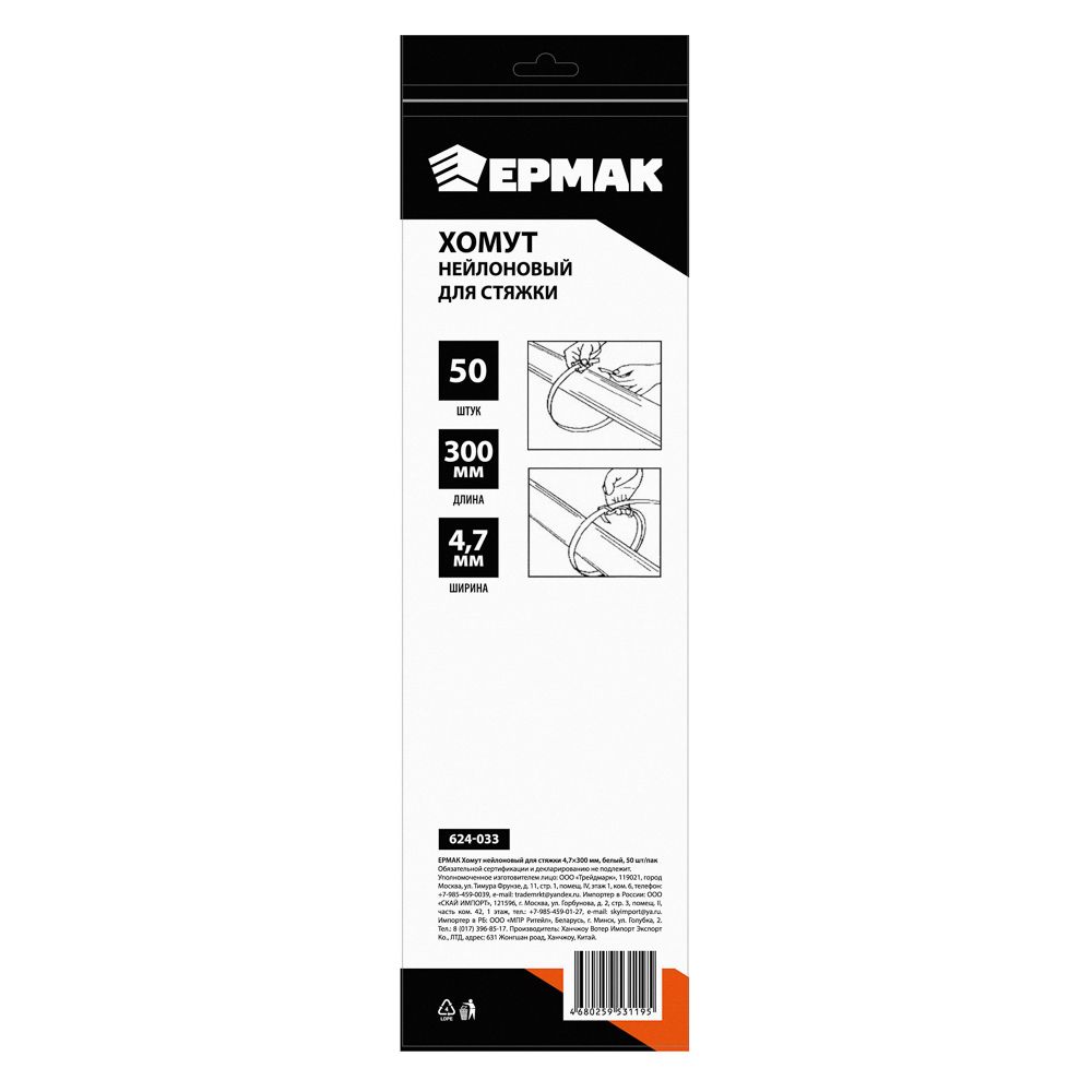 ЕРМАК Хомут нейлоновый для стяжки 4,7х300мм, белый 50шт/пак