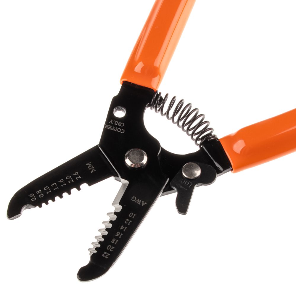 Инструмент для зачистки проводов используется при проведении резки кабеля, проводов и других электромонтажных работ. Пластиковые ручки, изолирующие электрическое напряжение, качественная прочная сталь.