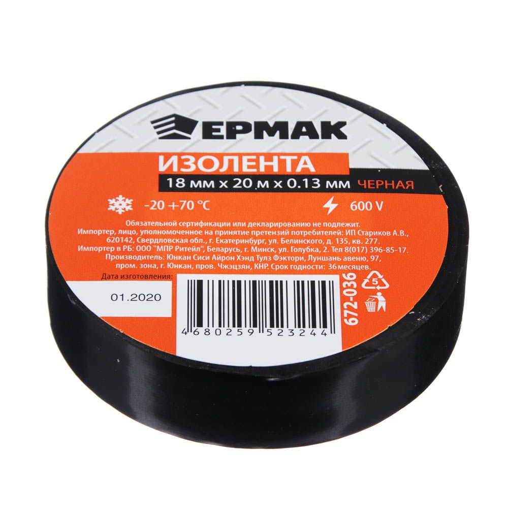ЕРМАК Изолента премиум класс 18мм-20м, черная