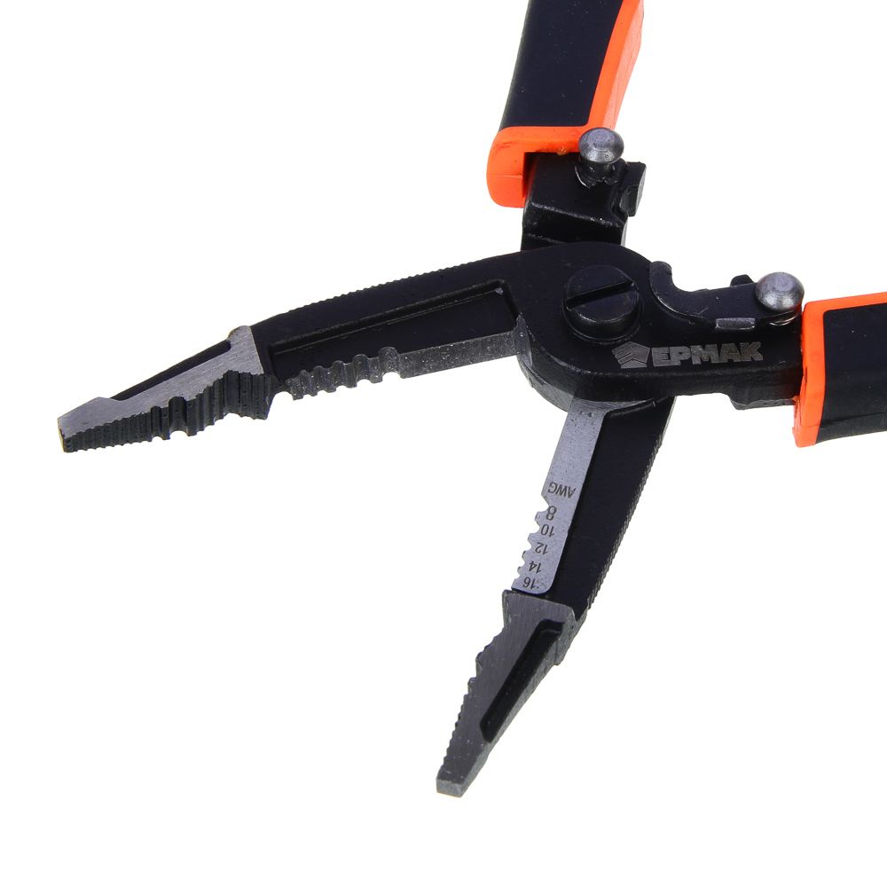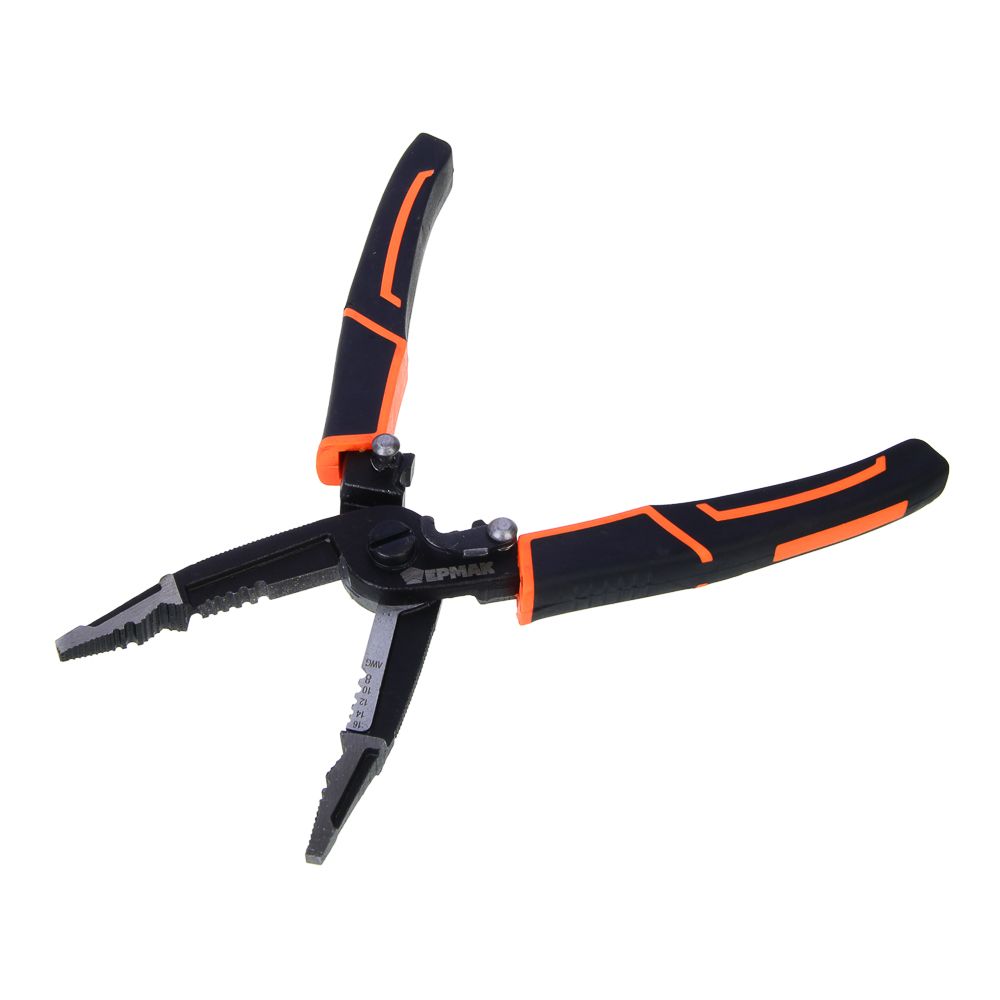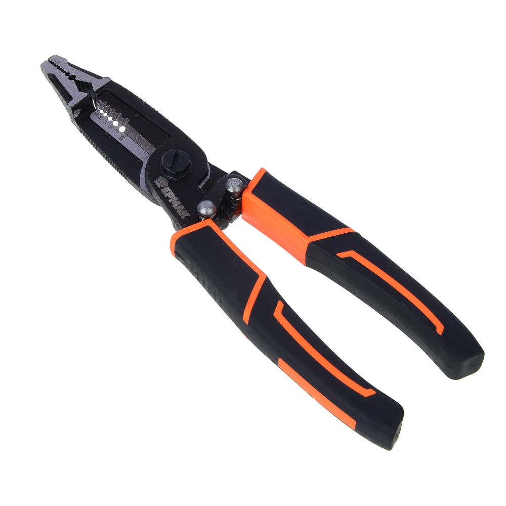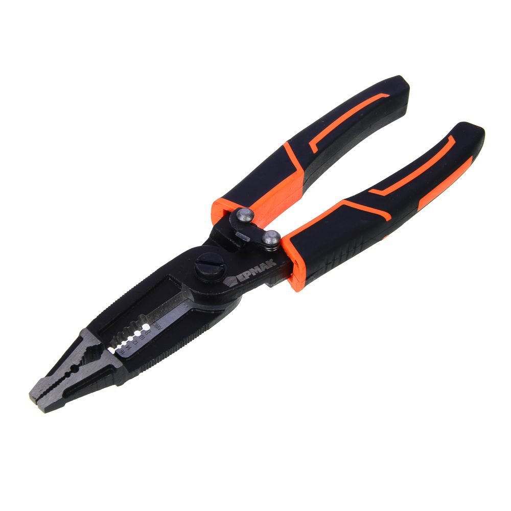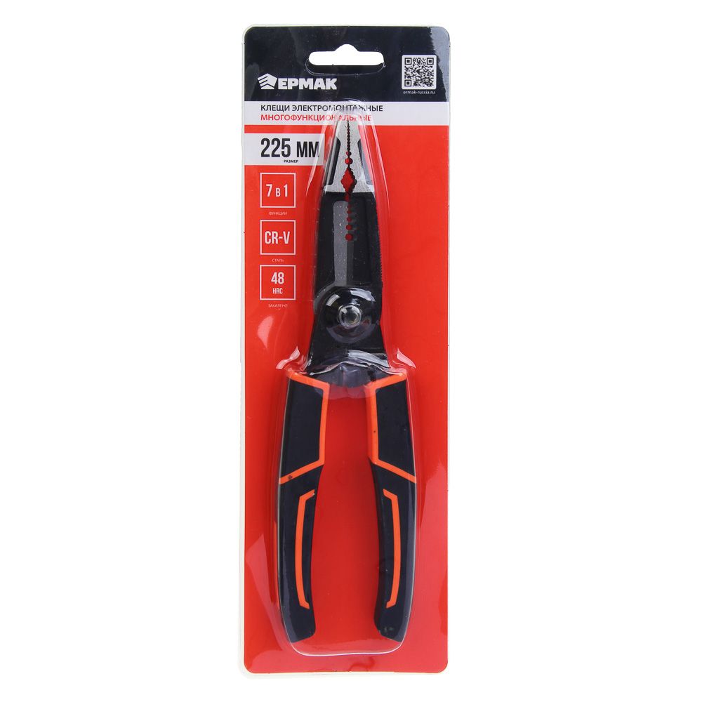 Клещи электромонтажные многофункциональные от бренда Ермак — идеальный инструмент для профессиональных электриков и домашних мастеров. Длина клещей составляет 22,5 см, изготовлены они из хромованадиевой стали типа 45 с твёрдостью HRC. Рукоятки выполнены из качественного пластика чёрного цвета с оранжевыми вставками, что обеспечивает комфорт и безопасность во время работы. Эти клещи станут незаменимым помощником при выполнении различных электромонтажных задач.