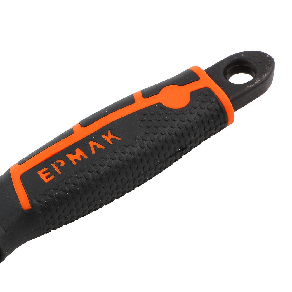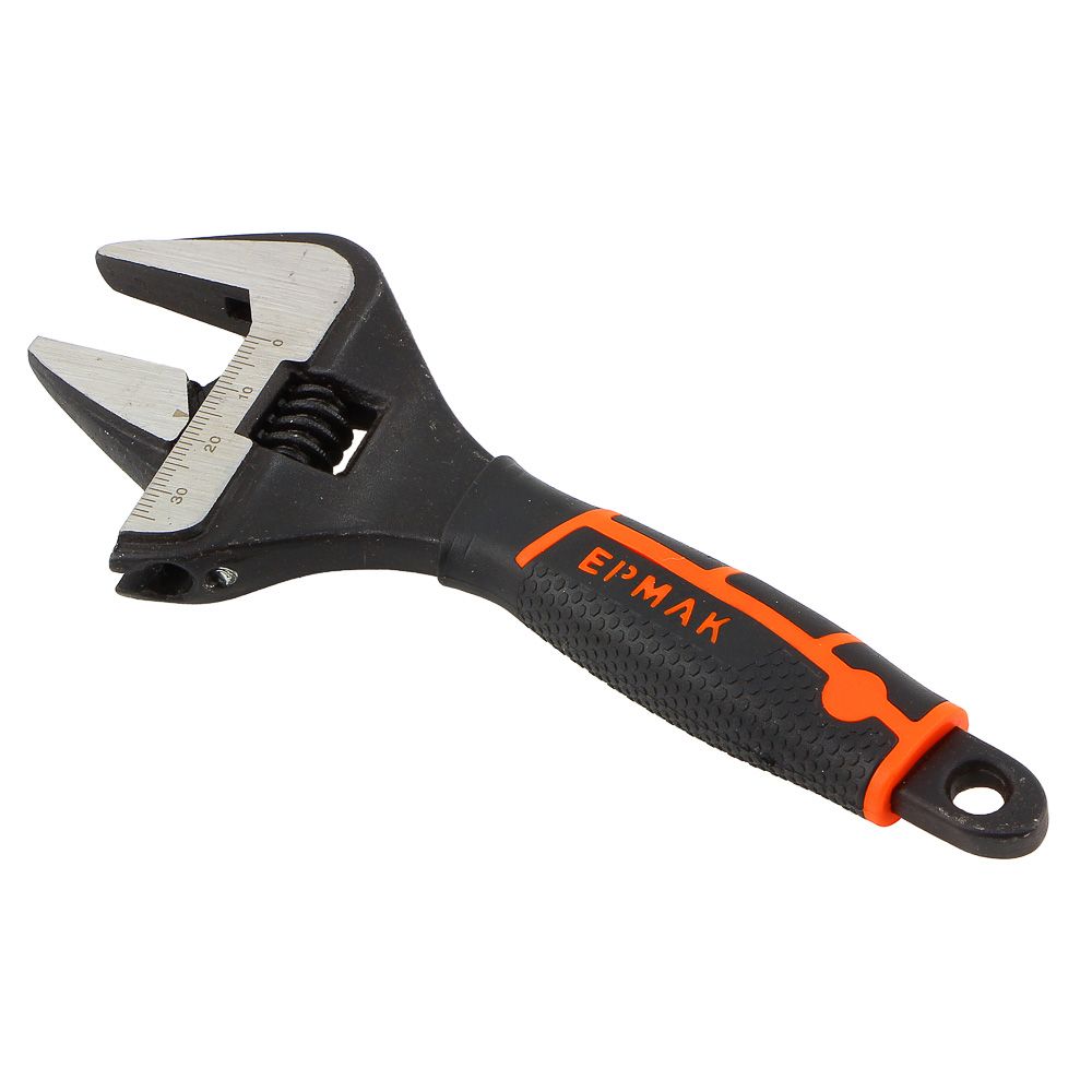 Разводной ключ ЕРМАК с удлиненными тонкими губками 150 мм применяется для монтажа и демонтажа крепежа в процессе сантехнических и других монтажно-ремонтных работ и способен заменить целый набор гаечных ключей. Снабжен мерной шкалой для удобства регулировки степени открытия. Тонкие губки позволяют работать с мелкими деталями, а также облегчают работу в ограниченном пространстве. Высокопрочная сталь не деформируется с течением времени. Прорезиненная рукоять с отверстием для подвеса не натирает ладонь и обеспечивает надежный хват.