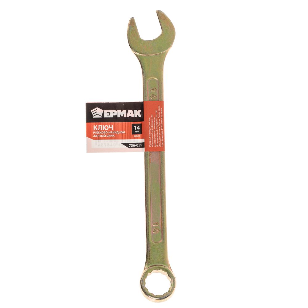 ЕРМАК Ключ рожково-накидной, 14мм, желтый цинк