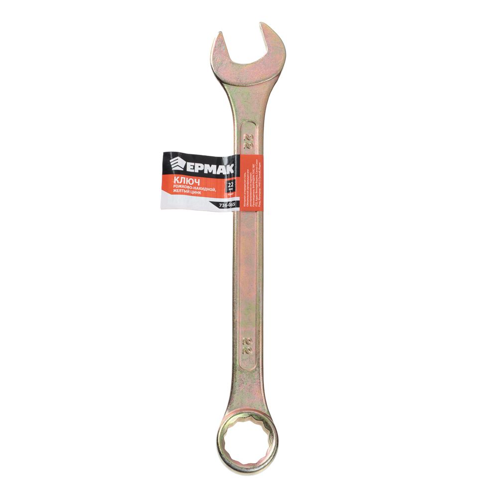 ЕРМАК Ключ рожково-накидной, 22мм, желтый цинк