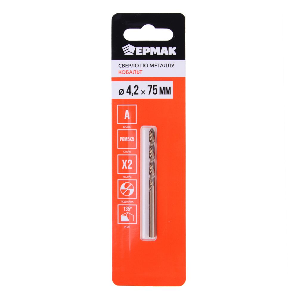 ЕРМАК КОБАЛЬТ Сверло по металлу 4.2х75мм, сталь Р6М5К5, класс А