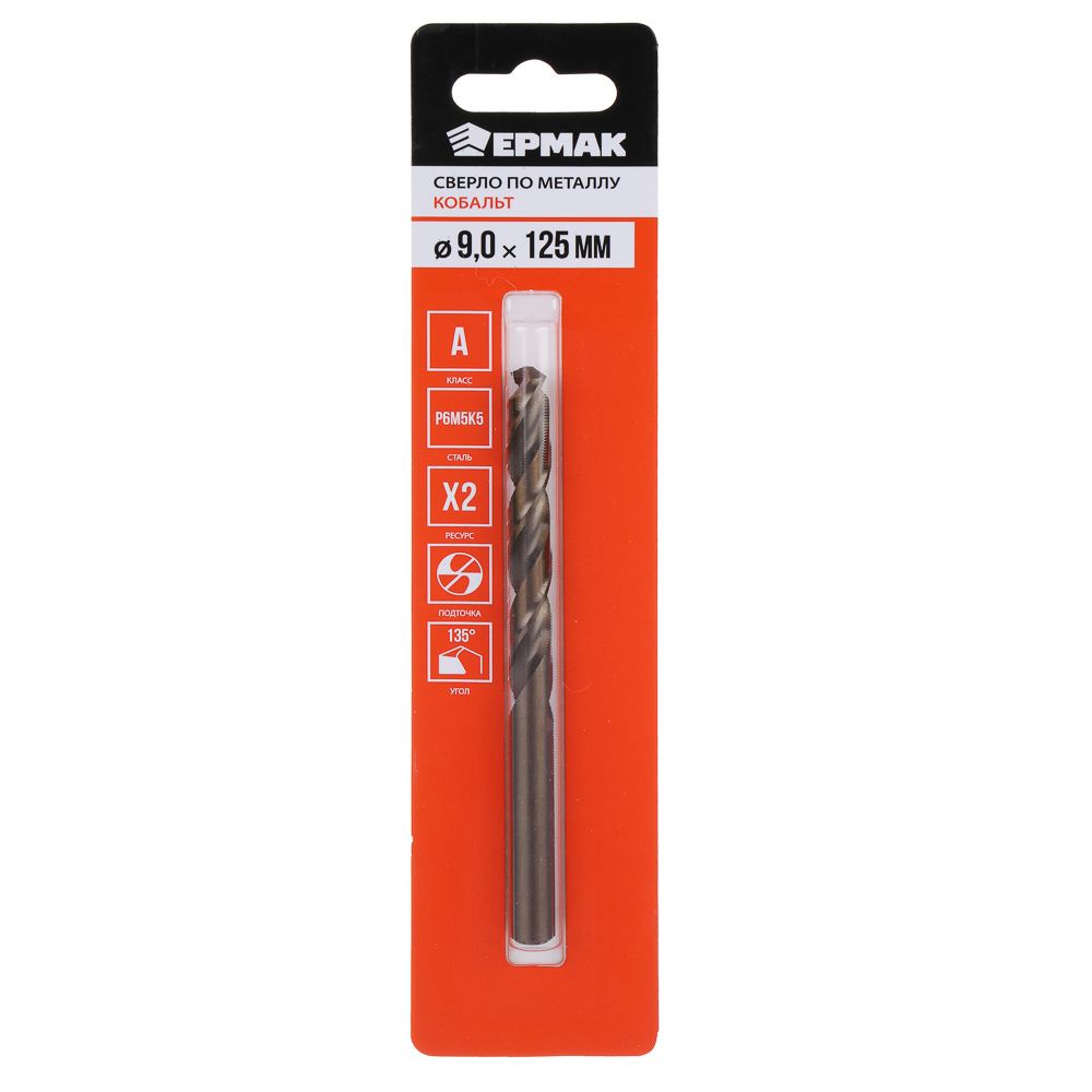 ЕРМАК КОБАЛЬТ Сверло по металлу 9.0х125мм, сталь Р6М5К5, класс А