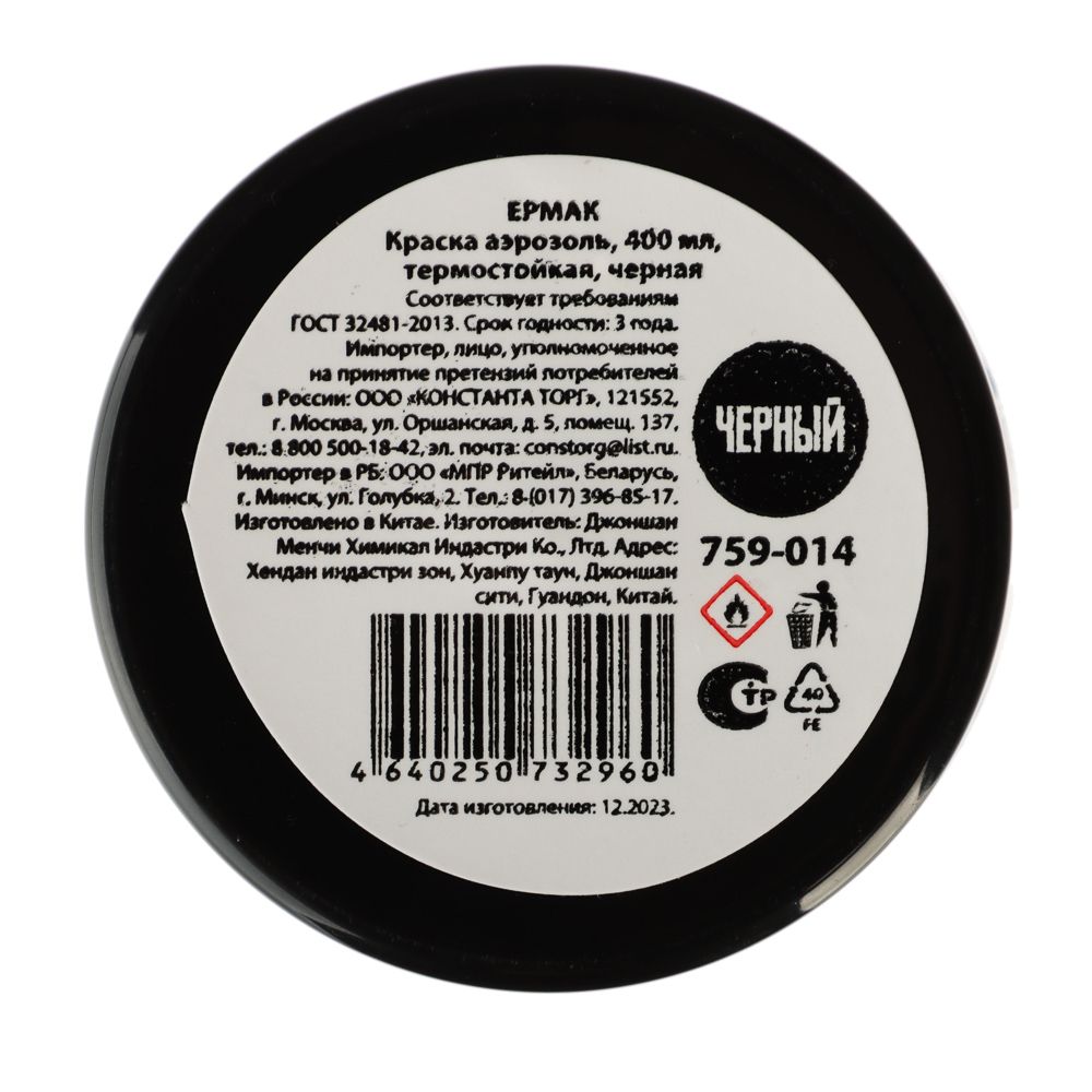 ЕРМАК Краска аэрозоль, 400 мл, термостойкая, черная
