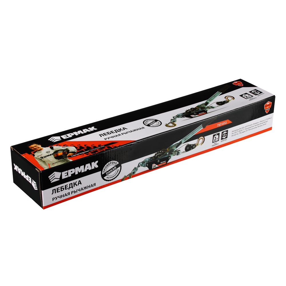 ЕРМАК Лебедка ручная рычажная 2т, длина троса 1,8м