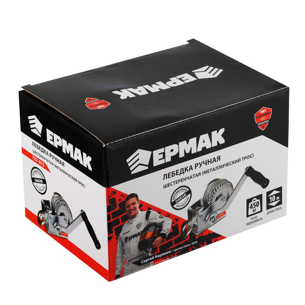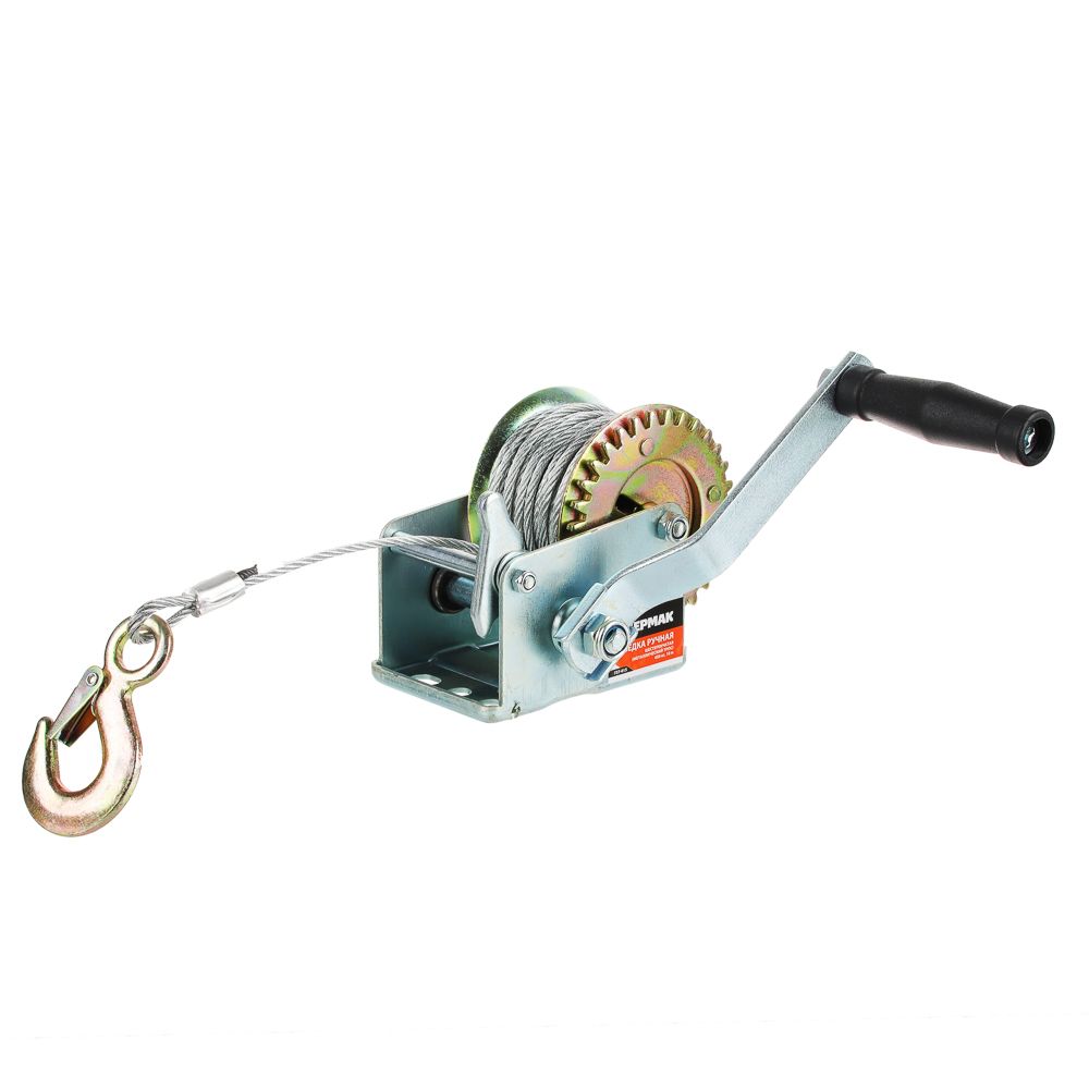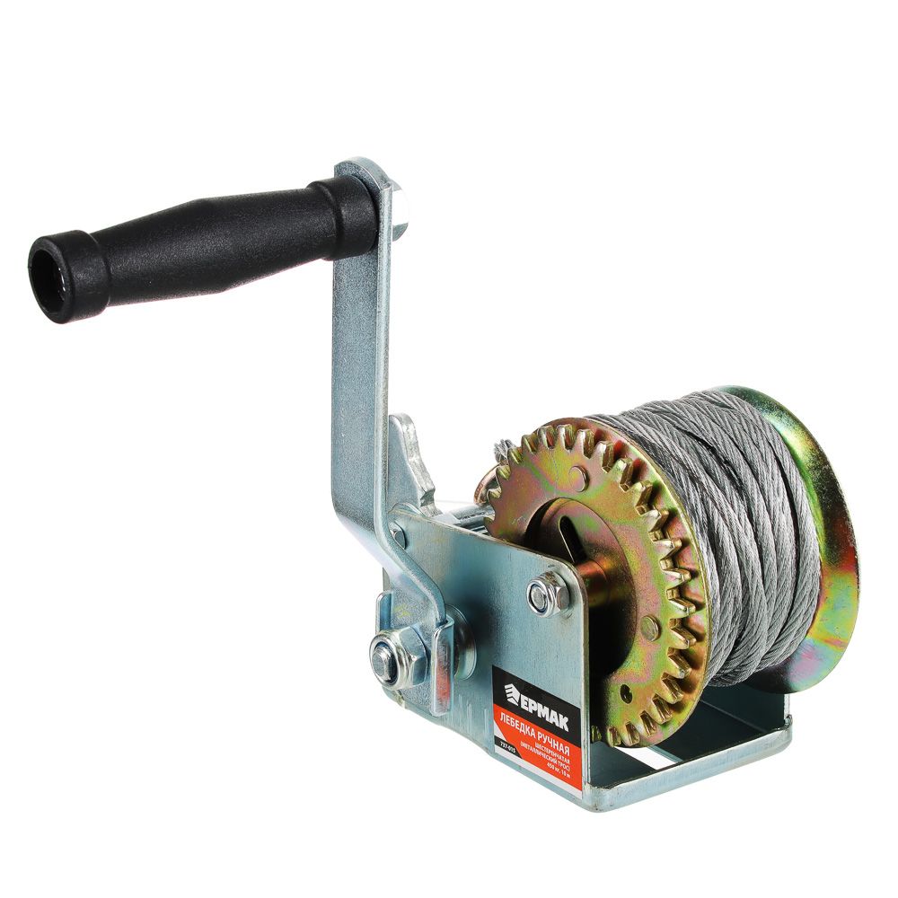 ЕРМАК Лебедка ручная шестеренчатая (металлический трос) 450кг, 10м
