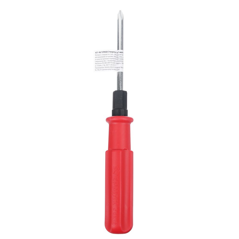 Ищете универсальную отвертку? Отвертка ЕРМАК 2 в 1 с металлическим фиксатором – это комбинированный инструмент с прямым шлицем на одном конце и с крестообразным – на другой. Теперь оба инструмента всегда будут под рукой. Отвертка выполнена из износостойкой углеродистой стали, что гарантирует прочность и сохранность при работе с крепежными изделиями.