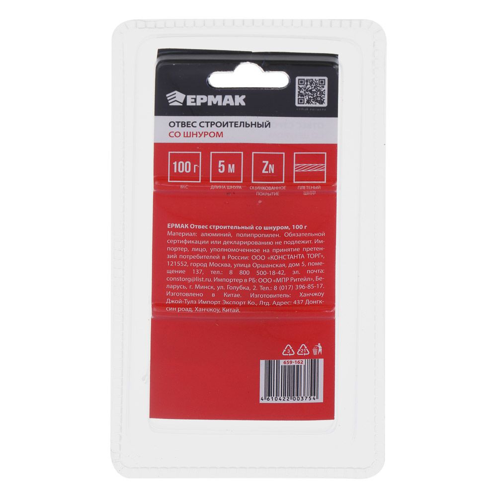 Ермак строительный отвес весом 100 грамм со шнуром длиной 5 метров — это высококачественный инструмент для профессионалов и любителей. Он изготовлен из алюминия и полипропилена, что обеспечивает надёжность и долговечность. Заострённый конец груза позволяет точно определить вертикальность стен, колонн и других конструкций. Имеет высокую точность измерений, что делает его идеальным инструментом для строительных работ. Благодаря своей надёжной защите от повреждений, он прослужит вам долгое время. Удобен в использовании и транспортировке. Шнур длиной 5 метров позволяет работать на больших расстояниях, а компактный размер отвеса облегчает хранение и переноску.