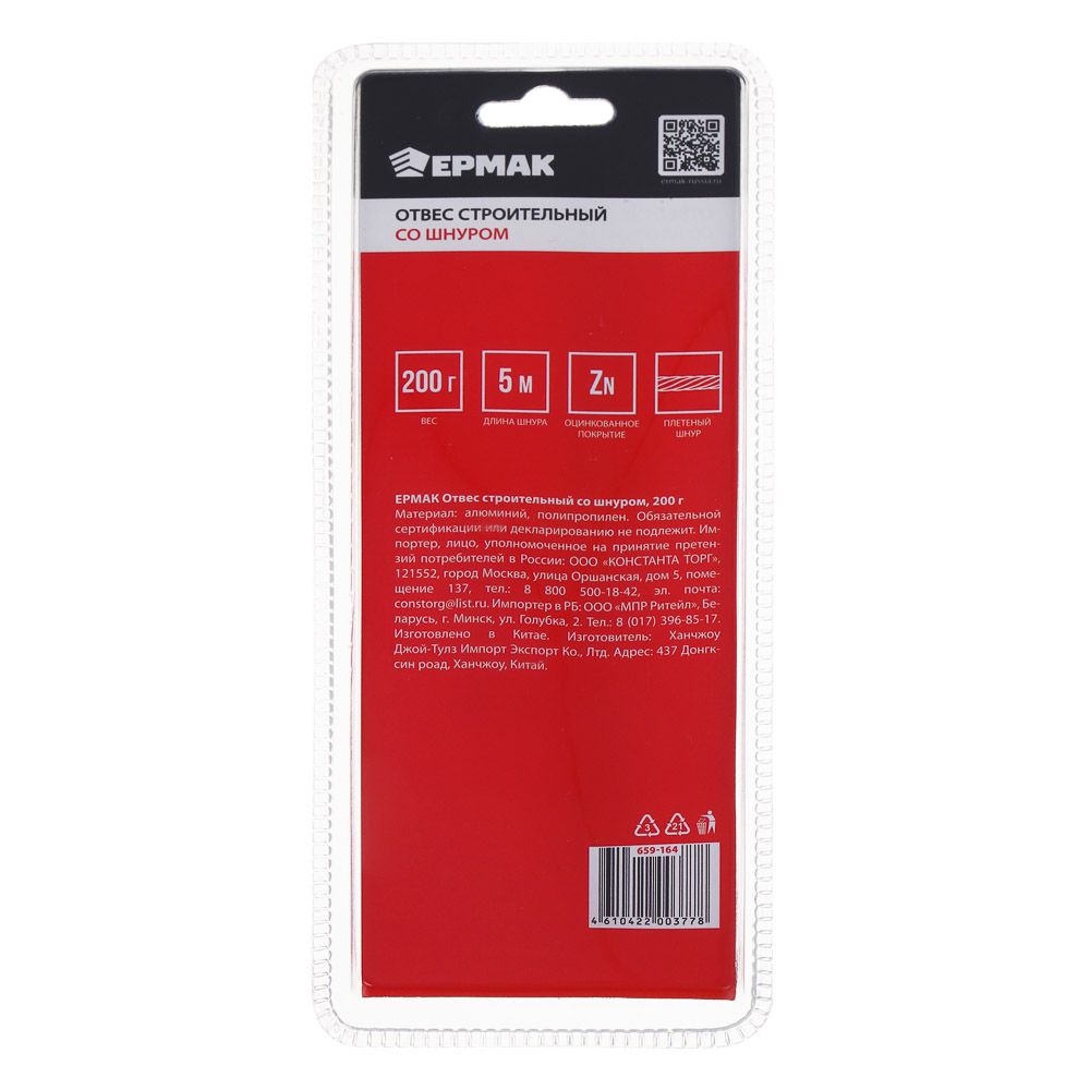ЕРМАК Отвес строительный со шнуром, 200г