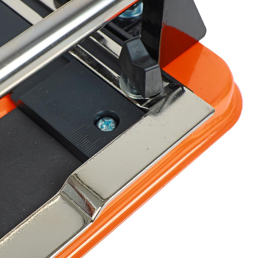 Ручной плиткорез ЕРМАК 600 мм предназначен для работы с керамической плиткой. Благодаря острому режущему элементу из твердого сплава, а также надежной фиксации обеспечивается качественный, точный и плавный рез с применением минимальных усилий со стороны пользователя. Боковая поддержка позволяет комфортно работать с плиткой большой ширины. Удобная конструкция значительно ускоряет процесс работы. Максимальная длина реза – 600 мм, максимальная толщина реза – 12 мм.