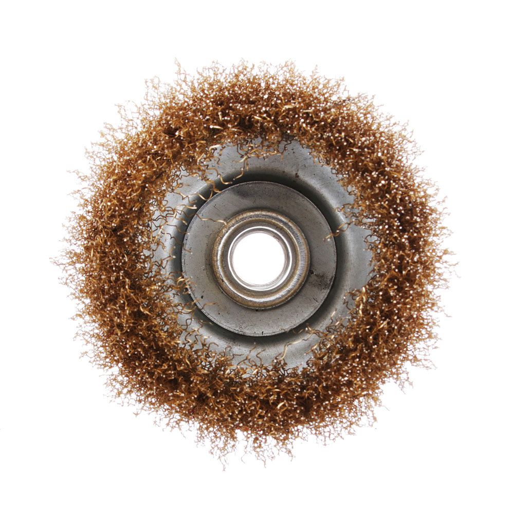 Изготовлена из стальной крученой проволоки. Такая щетка имеет высокую износостойкость и применяется при грубых зачистных работах по металлическим поверхностям, удалении окалины, ржавчины и заусенцев, сглаживании сварных швов.