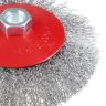 Металлическая щетка для УШМ ЕРМАК «Тарелка» 125мм / М14 с щетиной из стальной проволоки быстро и эффективно удаляет ржавчину с поверхностей, следы старой краски, загрязнения, заусенцы на деталях и заготовках. Дисковая форма идеально подходит для обработки пазов, углов, ниш. Гофрированный ворс долго сохраняет форму, не деформируется. Применяется на УШМ с максимальной производительностью до 125000 об./мин.