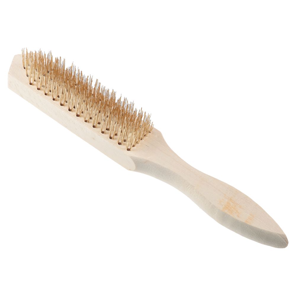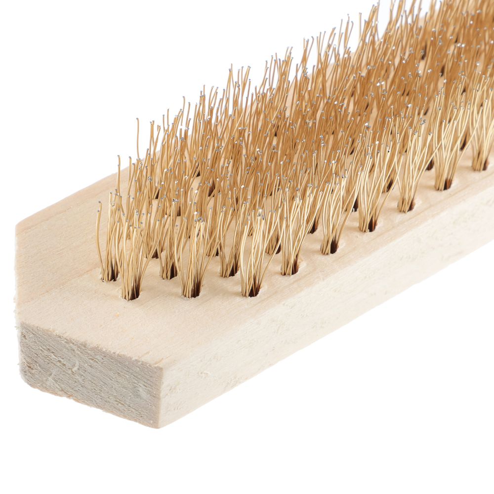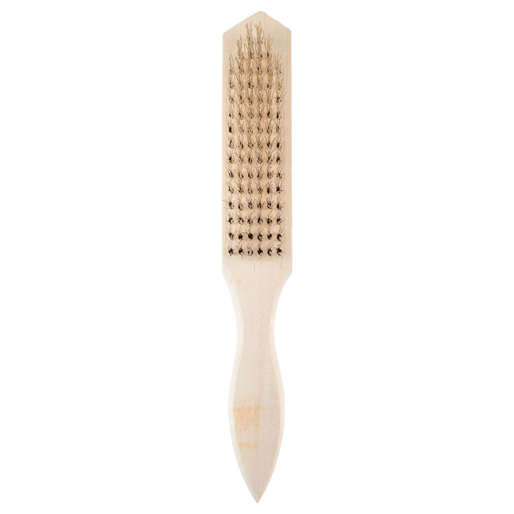 Металлическая щетка с деревянной ручкой отличается 6 рядным расположением проволоки. За счет этого увеличивается площадь очистки.