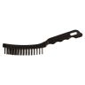 Металлическая щетка с пластиковой ручкой отличается 6-х рядным расположением проволоки. За счет этого увеличивается площадь и качество очистки.