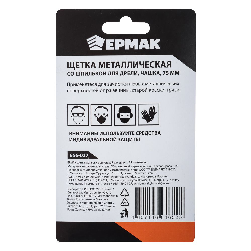 ЕРМАК Щетка металл. со шпилькой для дрели 75мм (чашка)