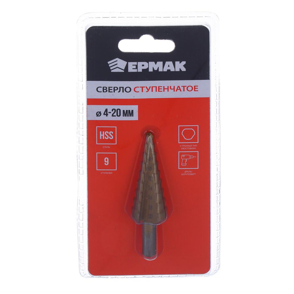 ЕРМАК Сверло ступенчатое 4-20мм, 9 ступеней, HSS