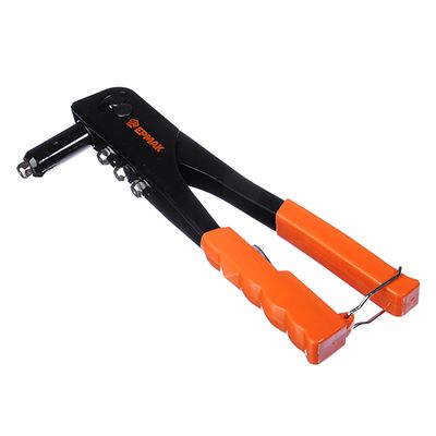Ручной заклепочник ЕРМАК 235 мм – инструмент, предназначенный для соединения металлических деталей между собой при помощи алюминиевых заклепок. Удобная конструкция позволяет быстро, качественно и аккуратно клепать детали. Рукоять анатомической формы надежно ложится в руку. В нижней части рукояти предусмотрена металлическая скоба для фиксации и удобства хранения инструмента.