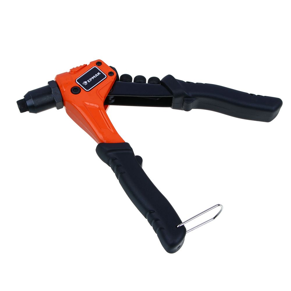 Ручной заклепочник ЕРМАК 200 мм предназначен для работы с заклепками диаметром 2,4-4,8 мм. Помогает надежно скреплять различные материалы между собой при помощи вытяжных или гаечных заклепок. Имеет широкую сферу применения: в строительстве, ремонте, в быту, в мастерских. Подходит для профессионального использования. Имеет прочный металлический корпус, комплект насадок, который закрепляется прямо на корпусе, а также фиксирующую скобу.
