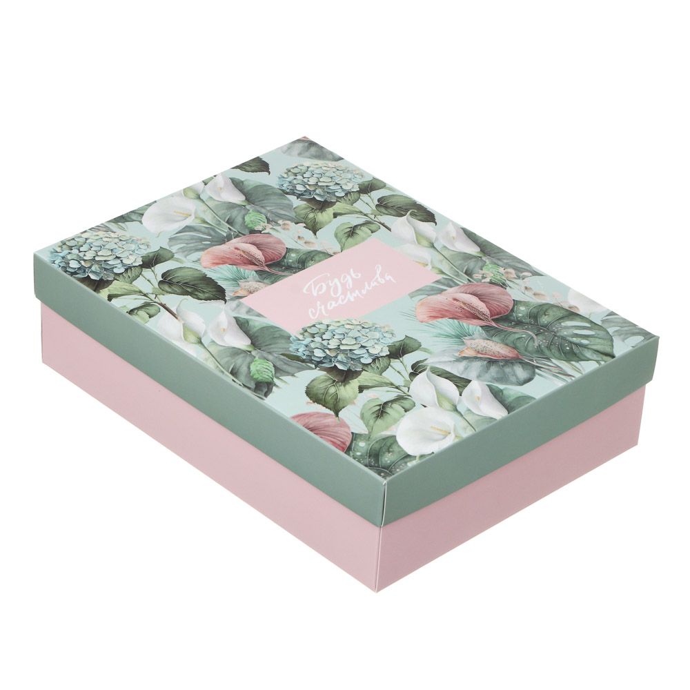 Коробка подарочная складная, бумага, 23х17х6 см, дизайн цветы