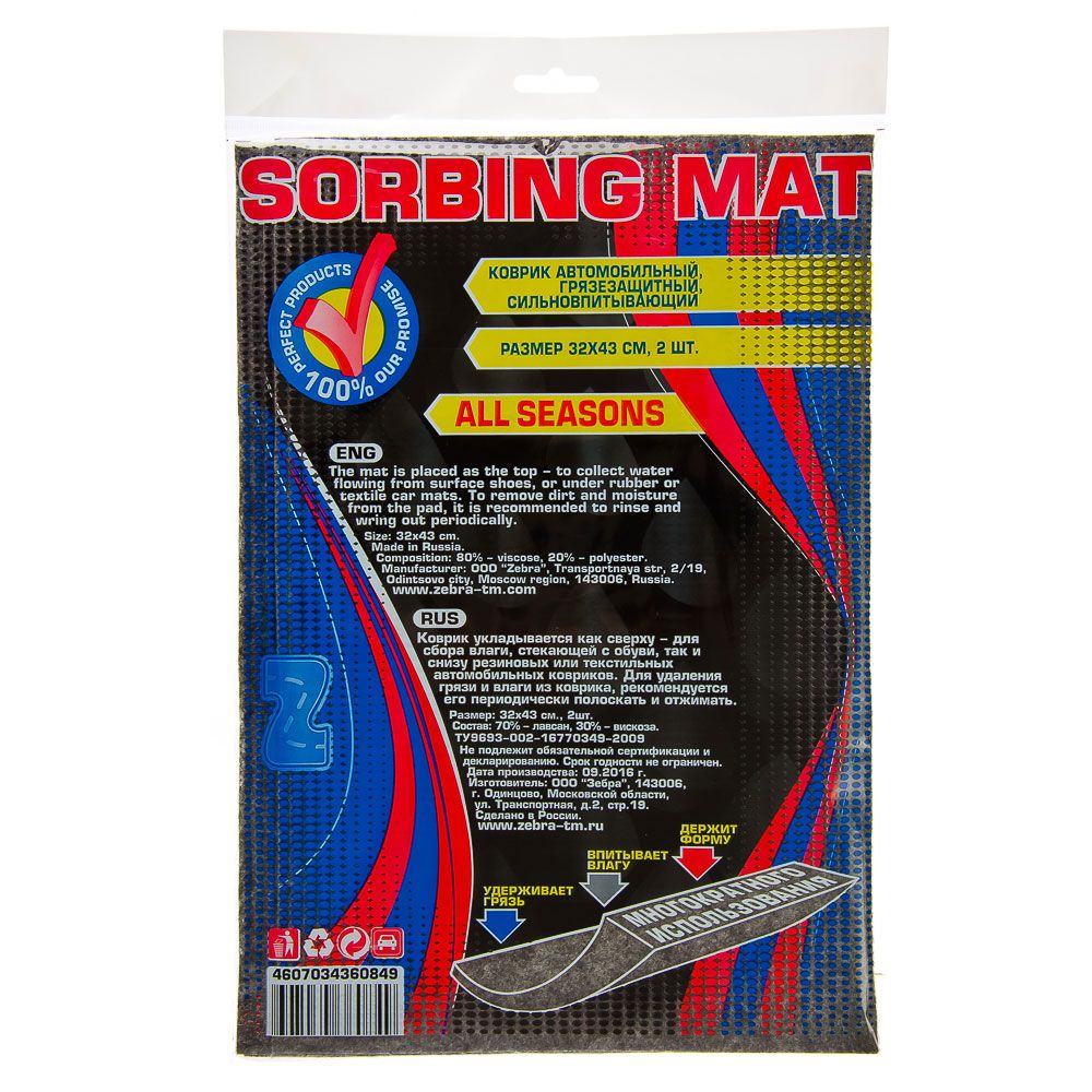 Коврик в машину грязезащитный, впитывающий, многоразовый размером 32x43 см – это всесезонный аксессуар для автомобиля, который используется для поддержания чистоты в салоне. Может укладываться поверх или под резиновые и текстильные коврики. Эффективно впитывает влагу с обуви, удерживает грязь, не позволяя ей разноситься по салону и отлично сохраняет форму даже при интенсивном использовании. Материал из лавсана и вискозы не гниет, не образует плесени и запаха. Для очистки коврика его достаточно ополоснуть в проточной воде и отжать. 2 штуки в наборе.