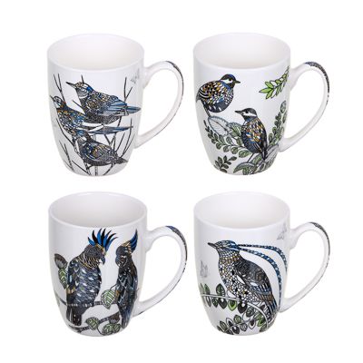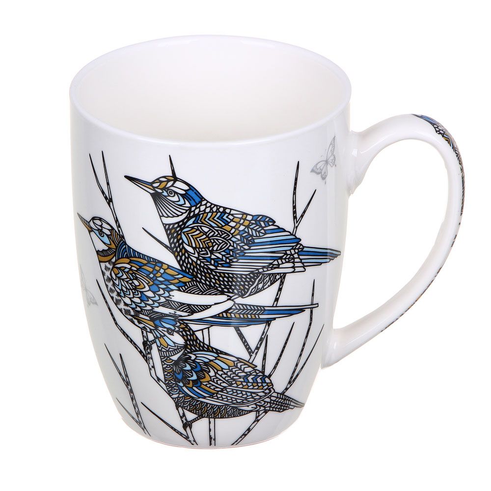Кружка 350мл, фарфор, "Птицы", 4 дизайна