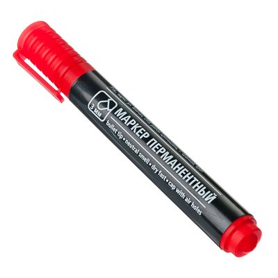 Маркер перманентный красный, пулевидный наконечник, линия 3мм