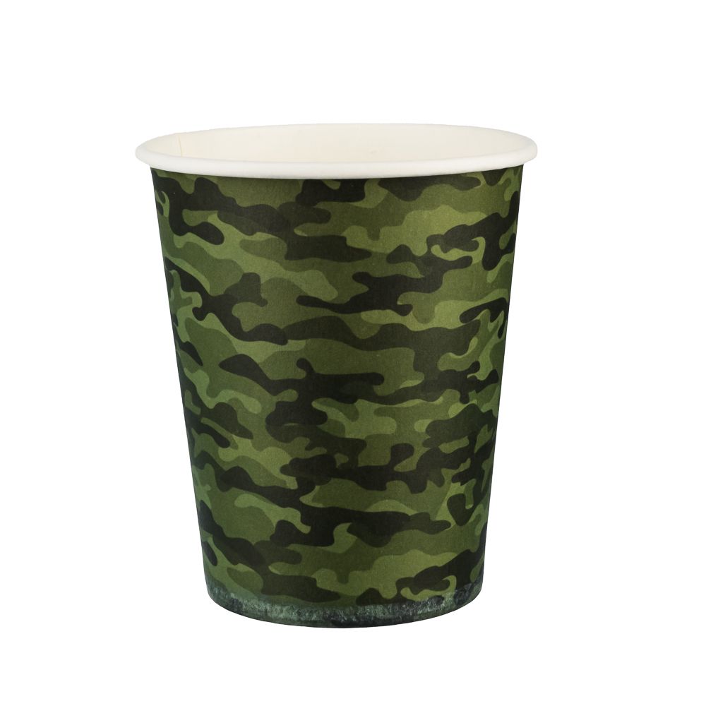 Набор бумажных стаканов в камуфляжном дизайне станет отличным атрибутом на мужском празднике. Стаканы изготовлены из плотной прочной бумаги, которая хорошо держит тепло и отлично сохраняет форму. В комплект входит 6 стаканов объемом 250 мл.