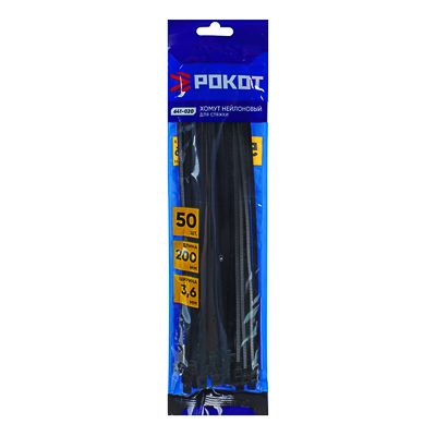 РОКОТ Хомут нейлоновый для стяжки 3,6х200мм, черный 50шт/уп
